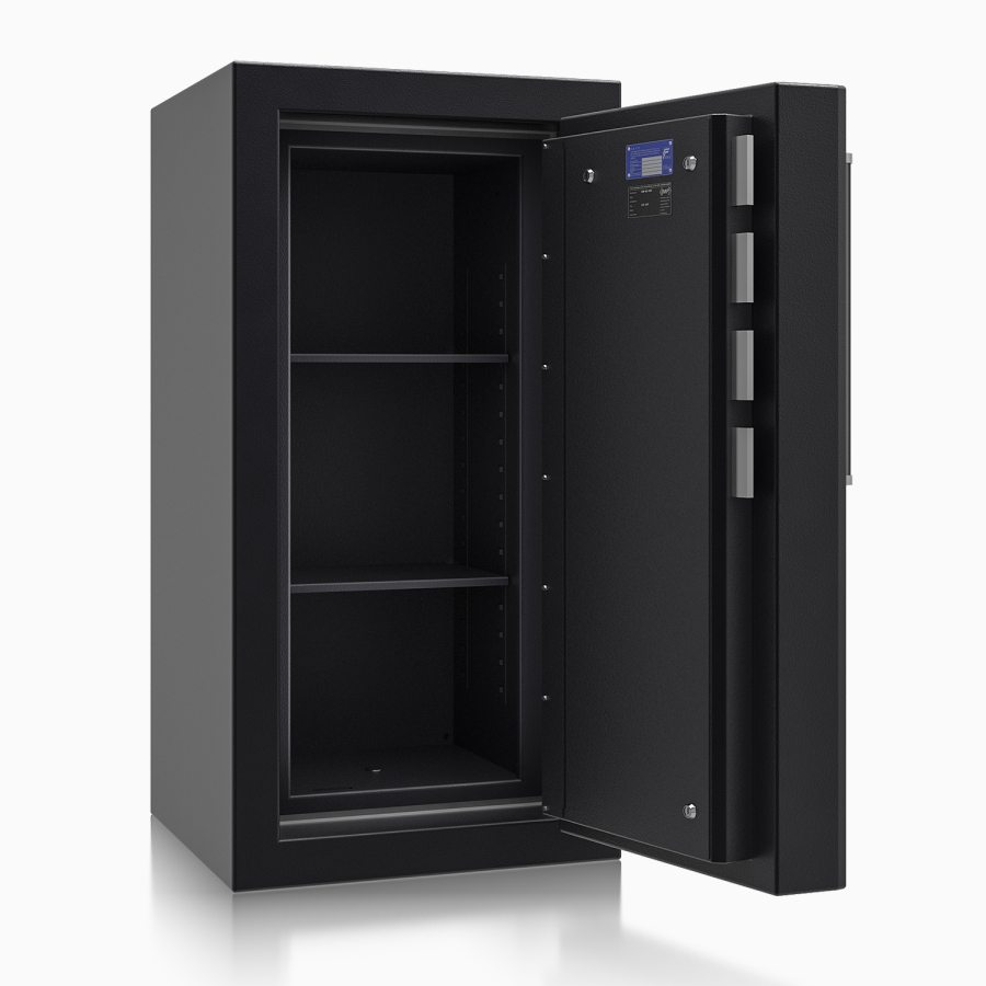 Dostupné zámky: 2x trezorový zámok na kľúč (KL), elektronický zámok (EL), mechanický kombinačný zámok (MC)