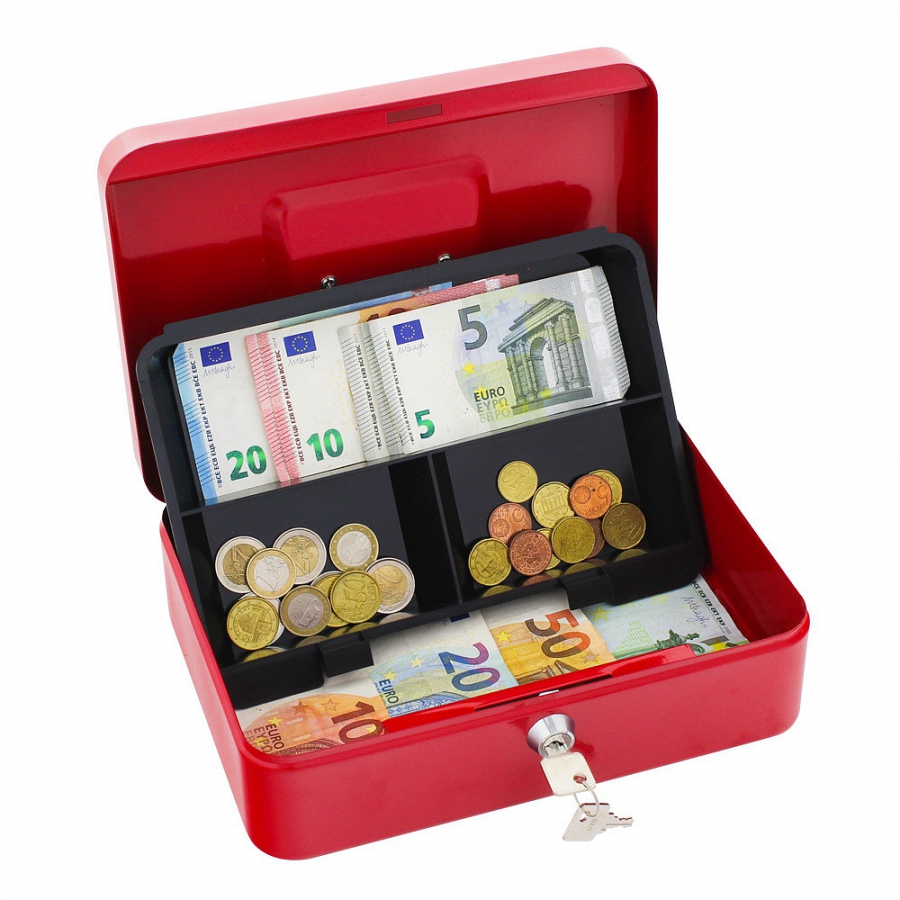 vysoce kvalitní pokladnička značky Rottner k bezpečné úschově mincí a bankovek.