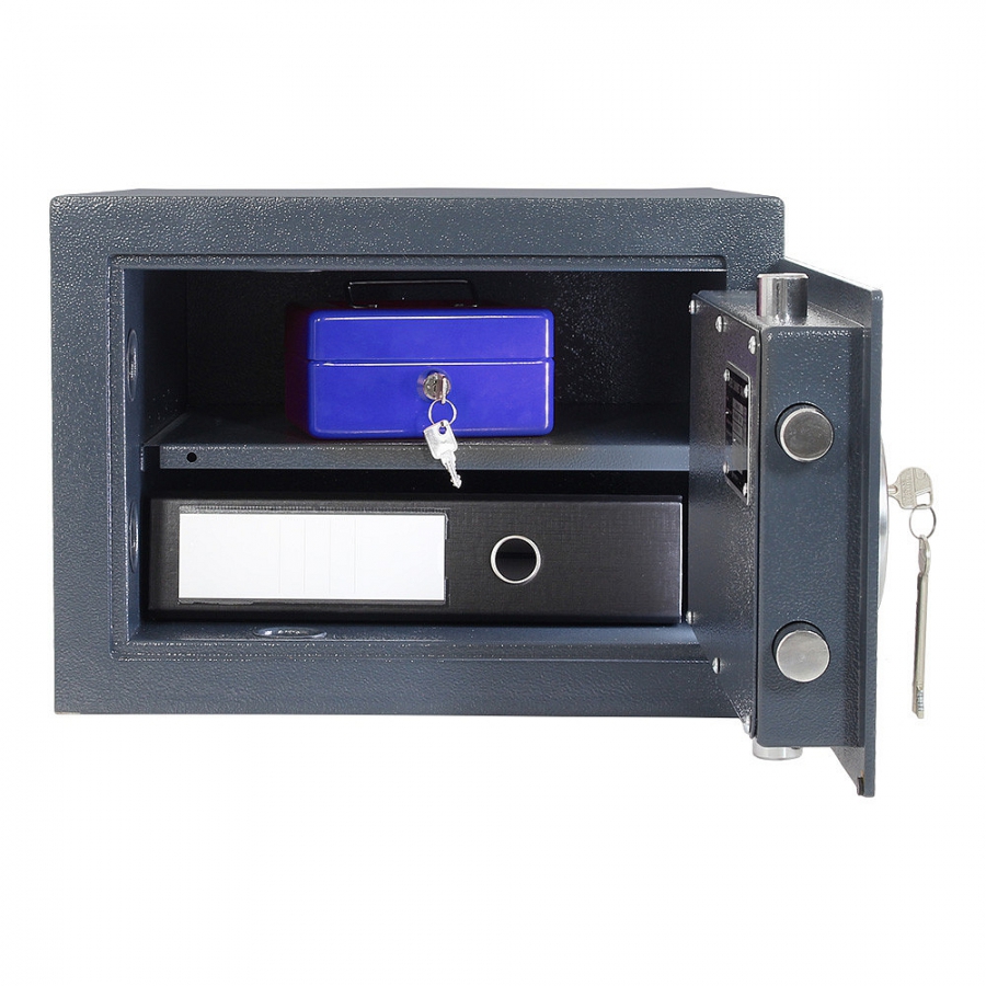 • Bezpečnostný trezorový zámok EN-trieda 1, s pancierovaním zámku z mangánovej ocele, 2 kľúče, uzamykanie prostredníctvom otočnej rukoväte