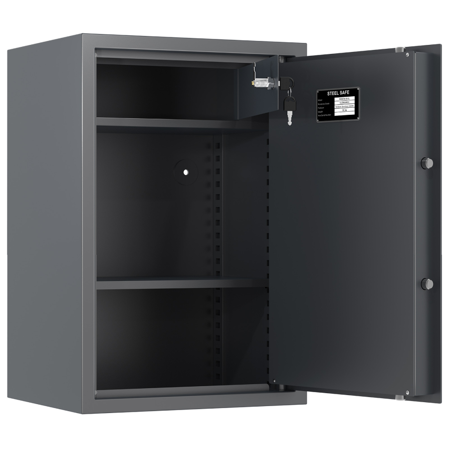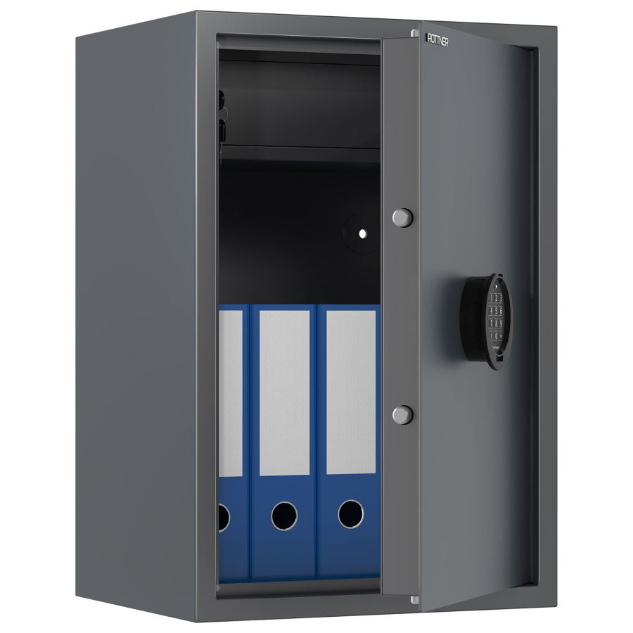 • certifikovaný zesílený elektronický trezorový zámek (napájení 9V baterií, která se nachází za výklopnou klávesnicí)
