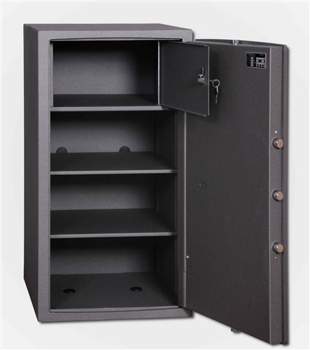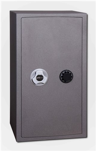 Praktický trezor radu NTR s mechanickým kombinačným zámkom, vnútorná schránka je uzamykateľná kľúčom (Eurolock). Je veľmi praktický, môže byť dobre ukrytý napr. vo vstavanej skrine, aby nebol tak zbytočne na očiach. Vhodový na uloženie cenností, hotovosti, dokladov a listín formátu A4. Kvalitný a praktický trezor za najlepšiu cenu s certifikátom úrovne mechanického zabezpečenia uschovaných predmetov dôležitým pre prípady eventuálneho jednania s poisťovňou alebo napríklad v prípade úschovy zbraní a streliva. Vzhľadom na veľkosť a hmotnosť je samozrejme veľmi dôležité náležite trezor ukotviť k pevnému materiálu. Z výroby pripravený na kotvenie k stene (2 otvory) + k podlahe (2 otvory). Základným farebným prevedením je granit. Vnútri trezoru sú dve vyberateľné police a súčasťou výrobku sú 2 ks kľúčov.